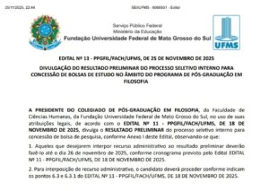 Publicado Resultado Preliminar Processo concessão de Bolsa